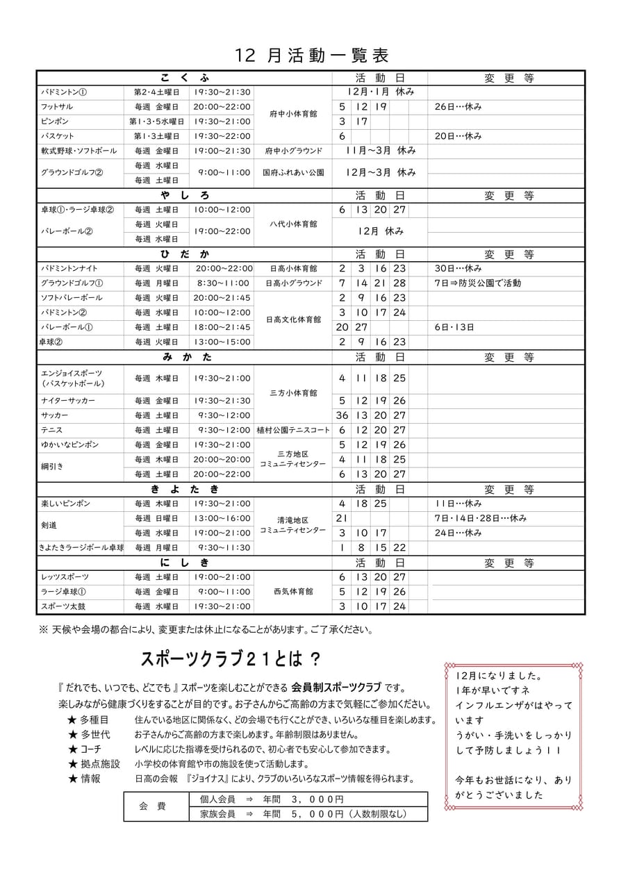 12月6日(土)のバスケットは活動を休止します。 <m(__)m>