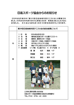 日高スポーツ協会より「第40回日高地域市民テニス大会」のお知らせ